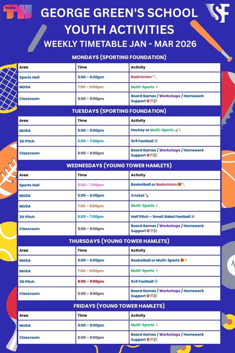 St Andrews is temporarily closed for refurbishment. We have moved to George Green’s School. Please see poster for more details.